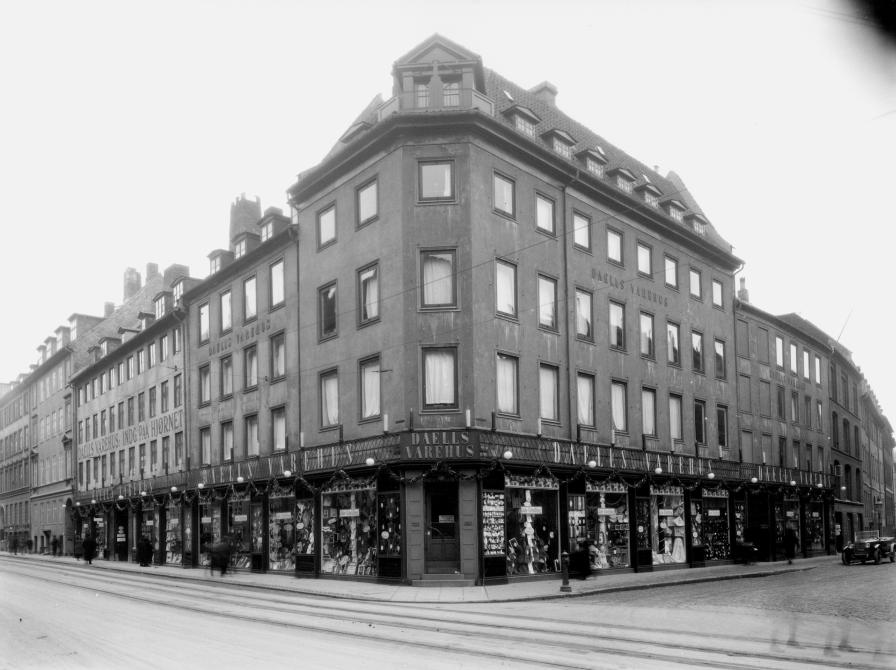 Kort om varehuset og masser af referencer til videre læsning: Daells Varehus blev etableret af brødrene Christen og Peter Møller Daell. Firmaet begyndte som et postordrefirma efter amerikansk forbillede. Den første adresse var i Studiestræde 21.