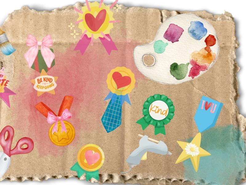 Giv verden og dig selv lidt ekstra kærlighed. Søs fra Den Lille Kunstskole byder hjerteligt velkommen i præmie- og medalje-salonen. Sammen tryller vi farverige rosetter og præmie-medaljer frem, med saks, stof, duppeditter, fantasi og selvfølgelig masser af glimmer og guld.
