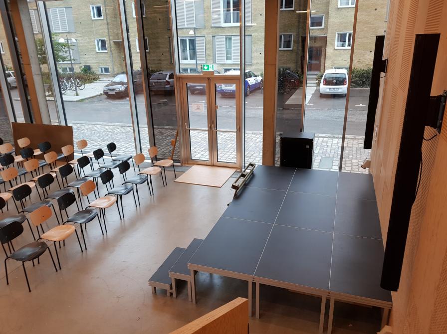 Salen kan bookes indenfor husets åbningstider.